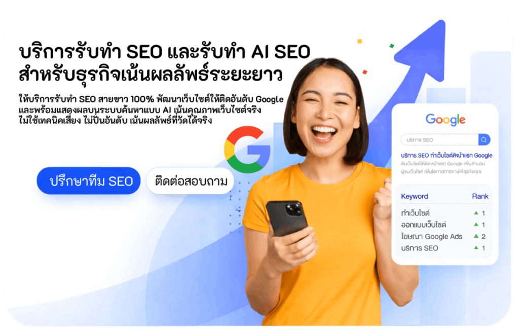 สำหรับธุรกิจที่มีเว็บไซต์ บริการรับทำ SEO เป็นเครื่องมือสำคัญในการเพิ่มโอกาสให้ลูกค้าค้นพบเว็บไซต์ในช่วงเวลาที่กำลังตัดสินใจซื้อ เพราะผลการค้นหาบน Google และ AI Search คือจุดเริ่มต้นของการติดต่อและการขายสินค้าในยุคปัจจุบัน
